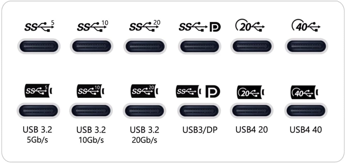 Even with this graphic, I still don’t know what they support. Is circle-20 also 20gbps? What is the speed when there’s no number? Do the non-DP ones not support displays at all? And there appears to be no such thing as USB4-DP?