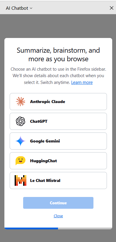 browser.ml.chat.enabledtofalsein about:config? That immediately removes the chatbot from my sidebar.This makes me glad that I switched back to safari.