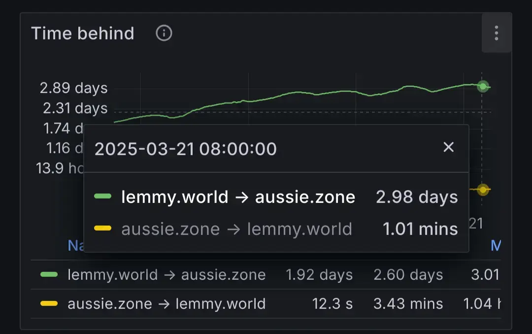 Parallel sending of federated activities to other instances. This can be especially useful for instances on the other side of the world, where latency introduces serious bottlenecks when only sending one activity at a time. A few instances have already been using intermediate software to batch activities together, which is not standard ActivityPub behavior, but it allows them to eliminate most of the delays introduced by latency. This mostly affects instances in Australia and New Zealand, but we’ve also seen federation delays with instances in US from time to time. This will likely not be enabled immediately after the upgrade, but we’re planning to enable this shortly after.
