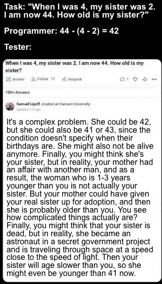 I think it’s more about how testers always run into all the edge cases programmers don’t think about