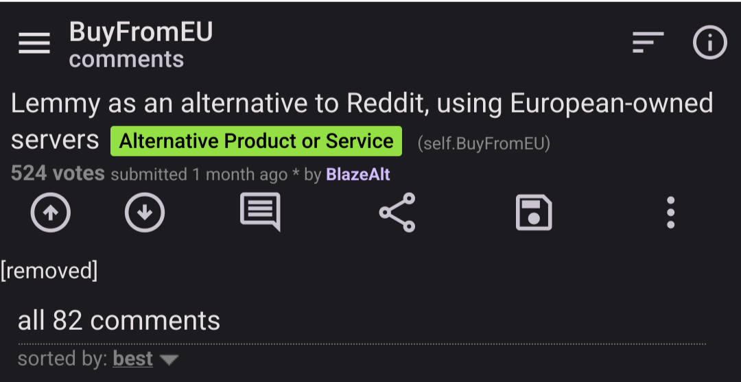 https://old.reddit.com/r/BuyFromEU/comments/1j0xkqa/lemmy_as_an_alternative_to_reddit_using/ Lemmy version: https://lemm.ee/post/61786987
