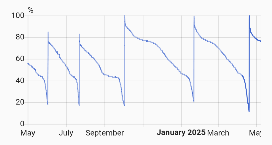 Above is a year of battery data from my worst window and one of my better ones. It’s heavily dependent on how close to a south facing wall the windows are. And of course, how your open close routines are setup.