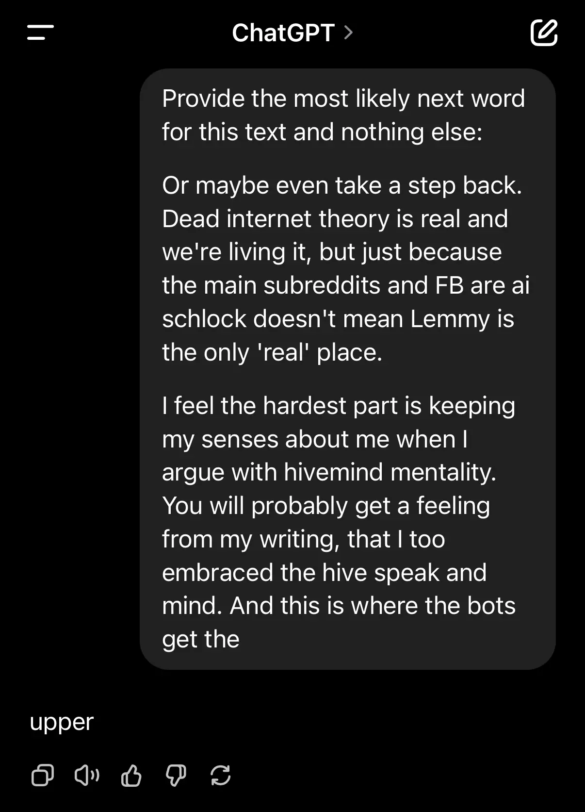 The only reason that last paragraph ain’t outright ai garbage (besides my elegant use of ‘everyperson’, mind you) is that there is a semi-original though buried at the end of it. This paragraph is odacious, so point taken.