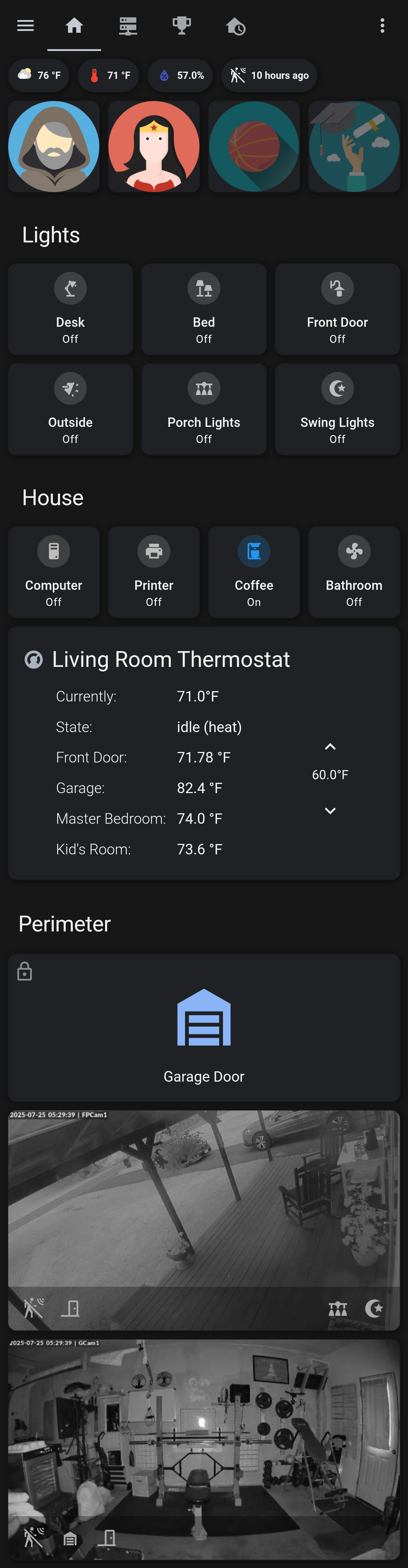 I use badges across the top to show things that need my attention, like unlocked doors, water leaks, package deliveries, low batteries, offline devices, etc.
