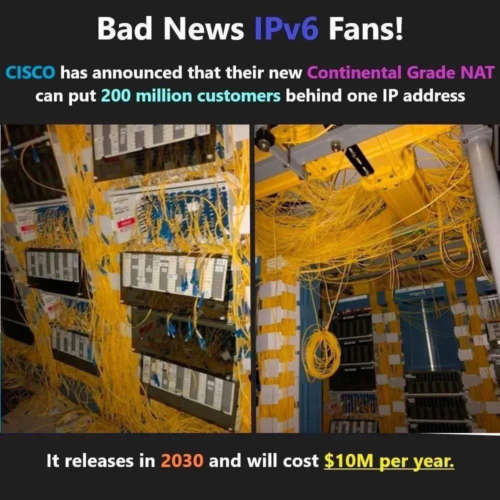 For every IPv4 address, IPv6 has 18 quintillion IPv4 Internets.