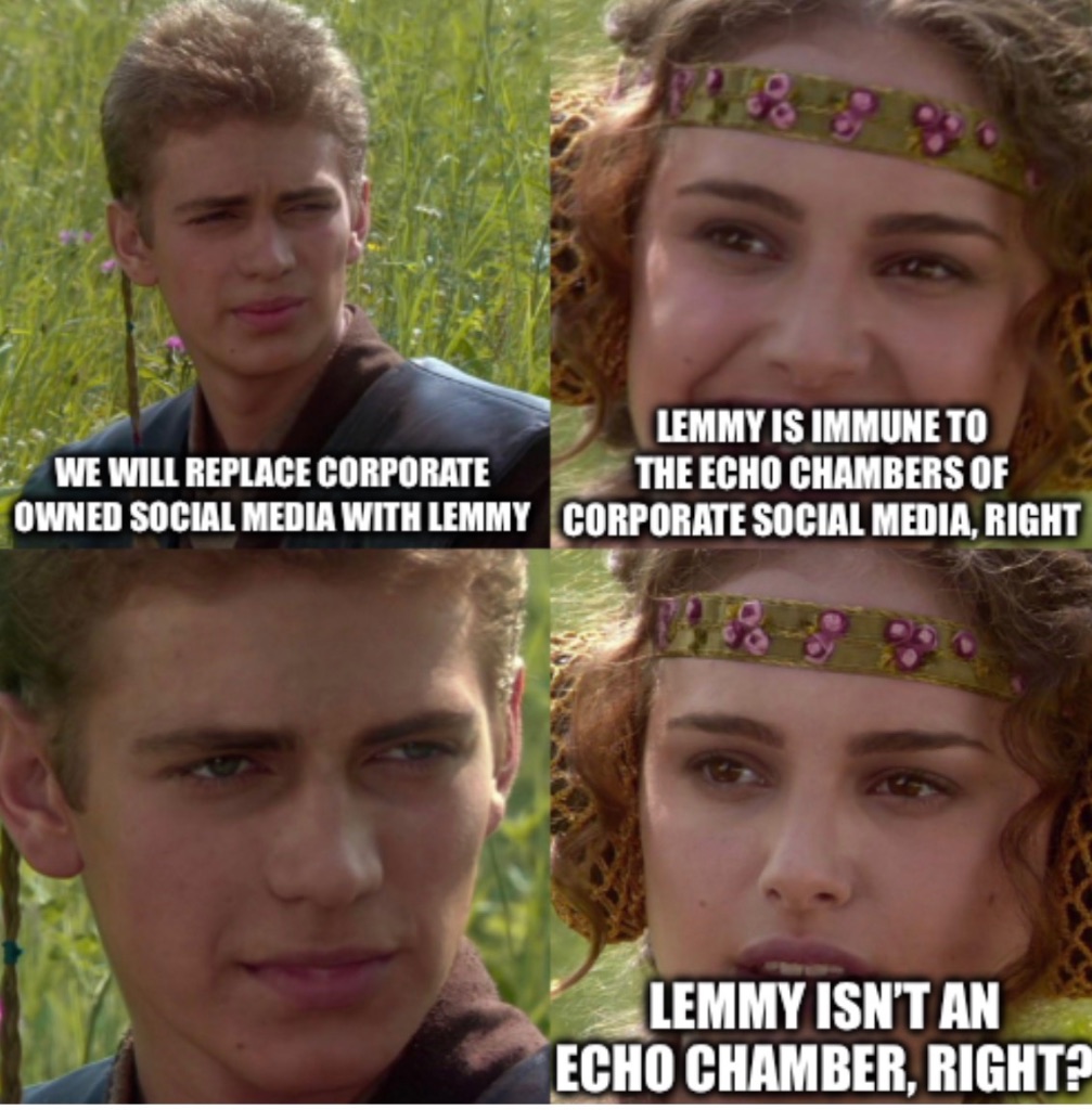 Guys, we only don’t have major tracking of users here.That’s it! Everything else is the fucking same shit you’d see on facebook. The moment Lemmy gets couple tens of millions of users, we gonna become 2nd facebook.