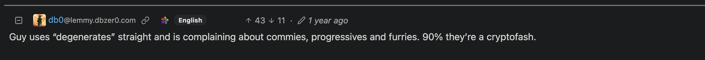 That’s not the main point though, the bigger issue was getting called a ‘degenerate’ that’s pretty much a red flag that someone’s a cryptofash.