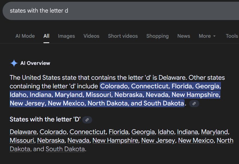 It explained it and I think that I get it now. Low-grade middle-school-“Your Mom”-joke, is it? Ha-ha… 🙄This also means that AI did better than myself at both tasks I’ve given it today (I found only 9 states with “d” when going over the state-list myself…).