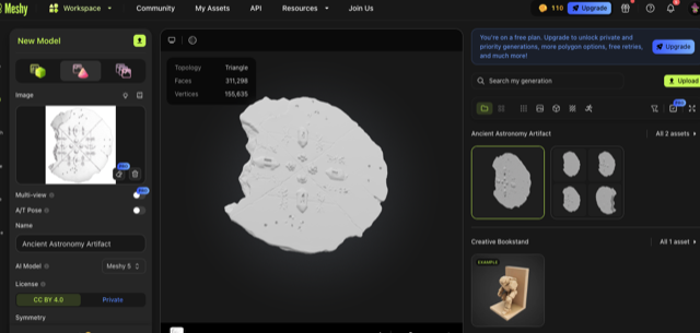 I would just about bet Meshy AI gave a “non-manifold” model. 3-D models that are intended to be digital assets can have that issue, and I would suspect it’s easier for an AI to produce them versus properly manifold objects ready to be made solid.
