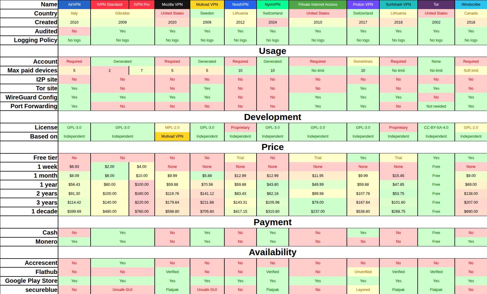 I think it’s just a relative color scale from a spreadsheet… with the older being the greenest, the youngest the reddest, and the rest just fall in between. ProtonVPN just happens to be in between, it’s not as red as the others but also not as green as the ones that have been around for much longer.