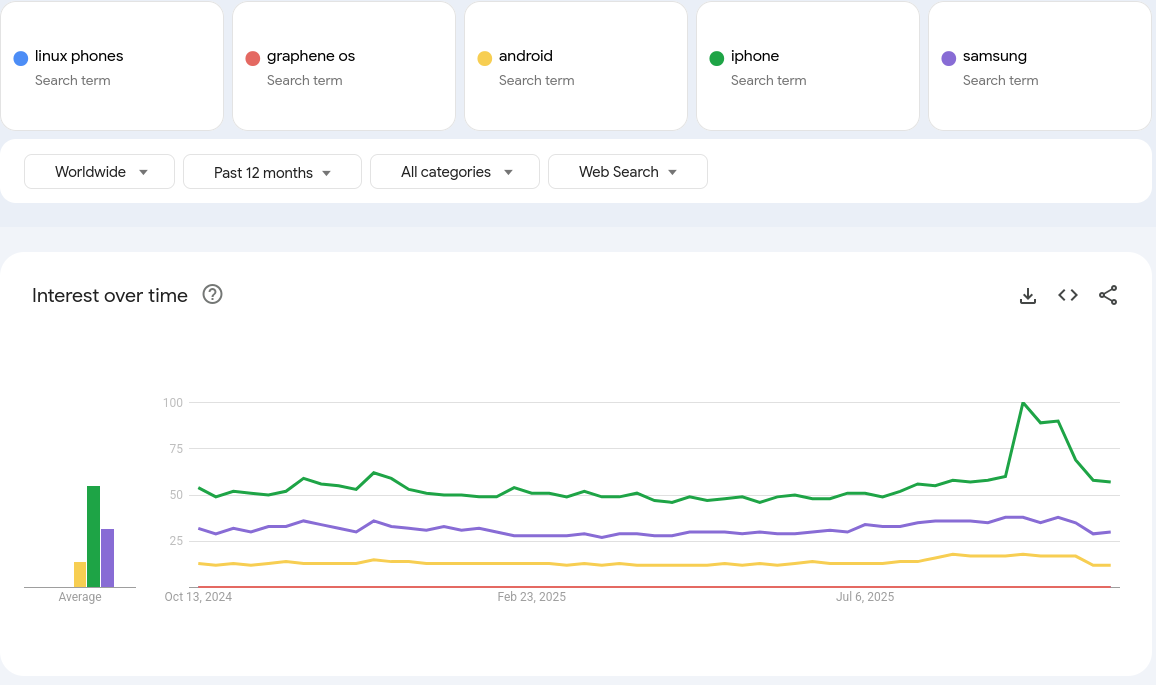 It seems to correlate with a drop in graphene OS searches (after its own sudden spike)