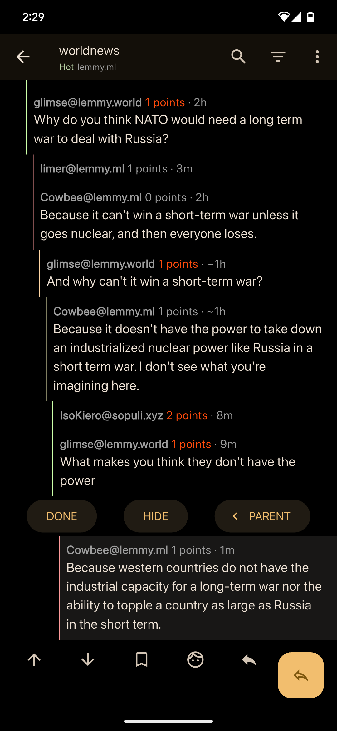 Russia currently has lost million soldiers and stockpiles of soviet relics are pretty much empty with a strong breeze away from total economy collapse. They don’t have power to conquer a potato field from a modern western country right now, much less against the whole global west.