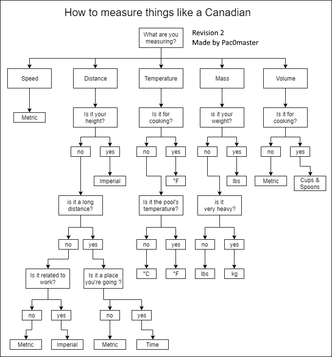 As a Canadian, can confirm, and yeah I agree it’s kinda nuts. But it’s what we’re all used to here, and most people will look at you weird or confused if you use the “wrong” system of measurement.