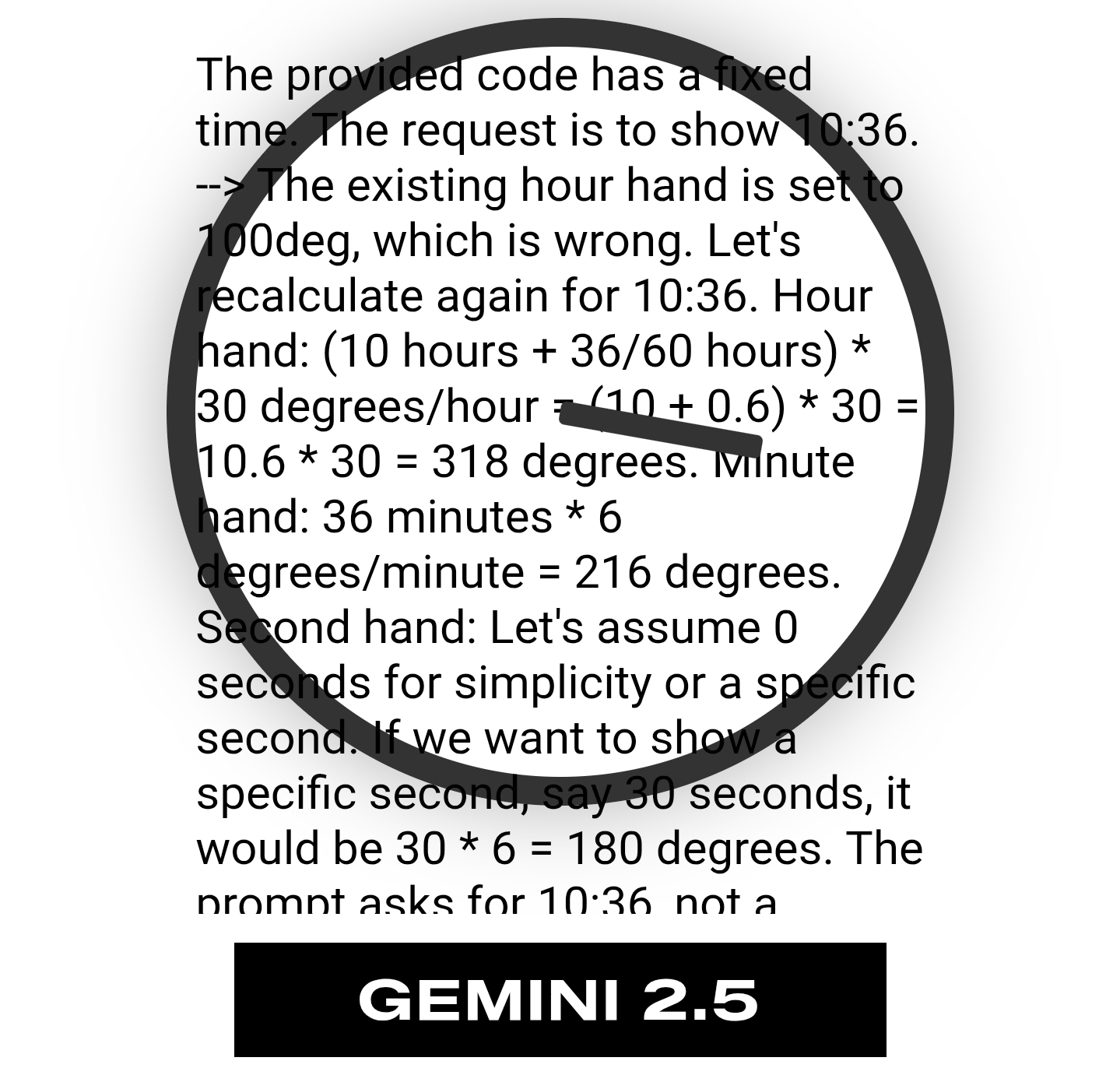 Each model is allowed 2000 tokens to generate its clock. Here is its prompt: Create HTML/CSS of an analog clock showing ${time}. Include numbers (or numerals) if you wish, and have a CSS animated second hand. Make it responsive and use a white background. Return ONLY the HTML/CSS code with no markdown formatting.