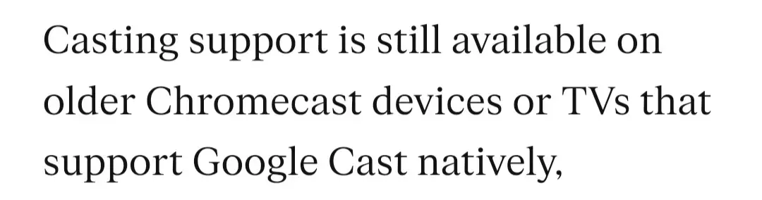 Seems like if you’ve got the ad-free plan and an older chromecast you’re still ok… For now. This is indicative though that the service may not be viable for long for you.
