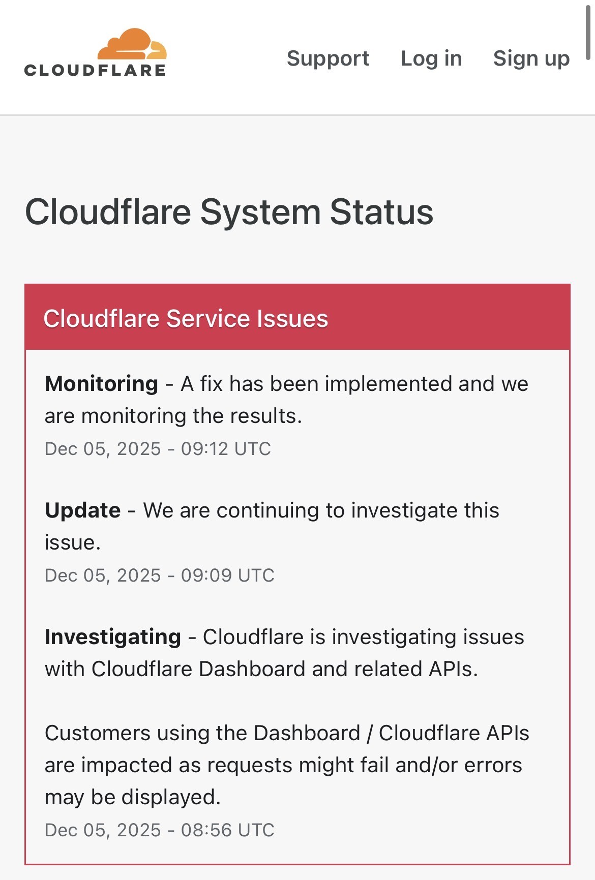 That was not scheduled maintainance, that was theit WaF and Workers dying. https://www.cloudflarestatus.com/incidents/lfrm31y6sw9q https://www.cloudflarestatus.com/incidents/k9ppxftx8bs5