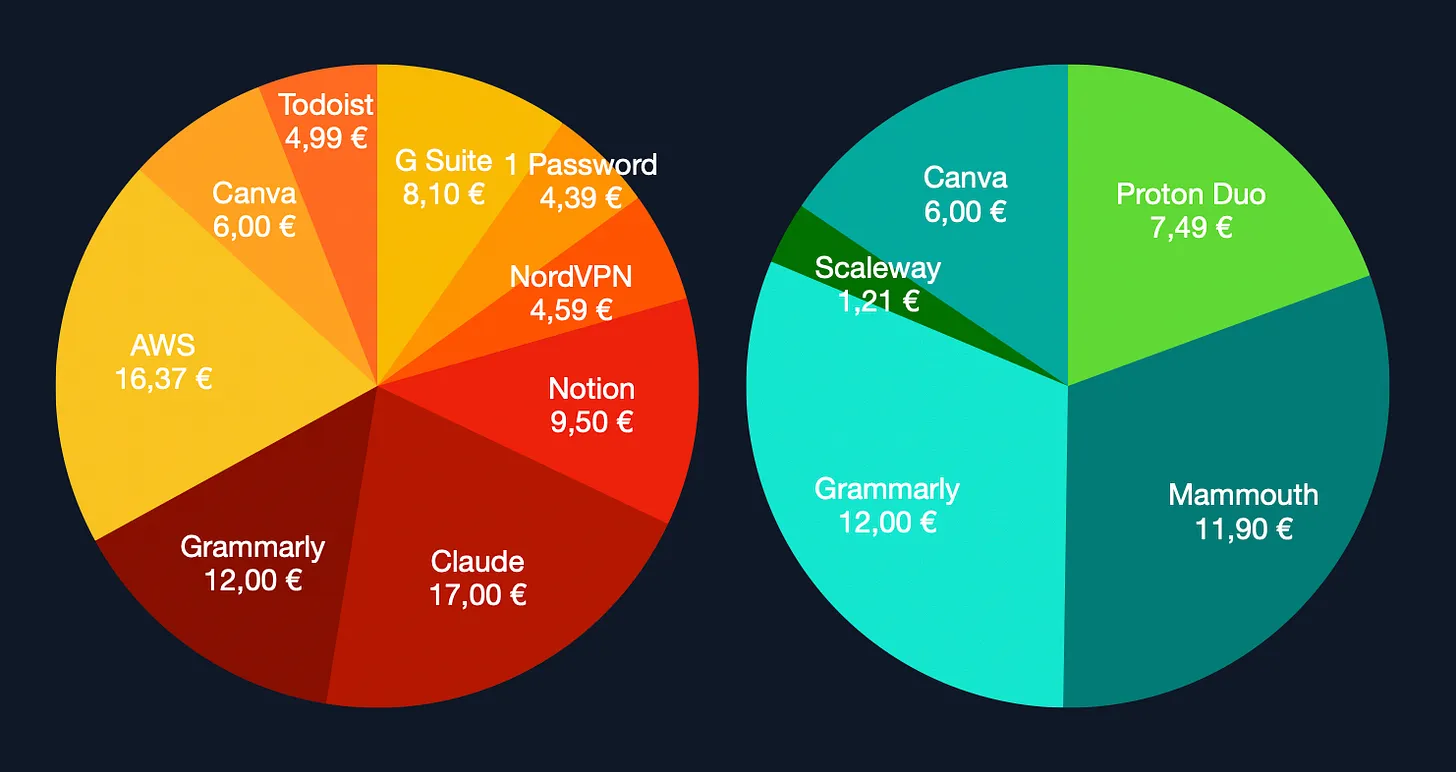 Me too. I pay 7€/month for a VPS. I put Yunohost on it. That makes selfhosting really easy and low-maintenance. And that’s pretty much it, with stuff I rely on. Except from some separate email accounts. And I just skip all the AI stuff. That’s an extra $20 that doesn’t go to big tech, and ChatGPT and Grok are for “free” once I feel the urge to pose a question to AI.