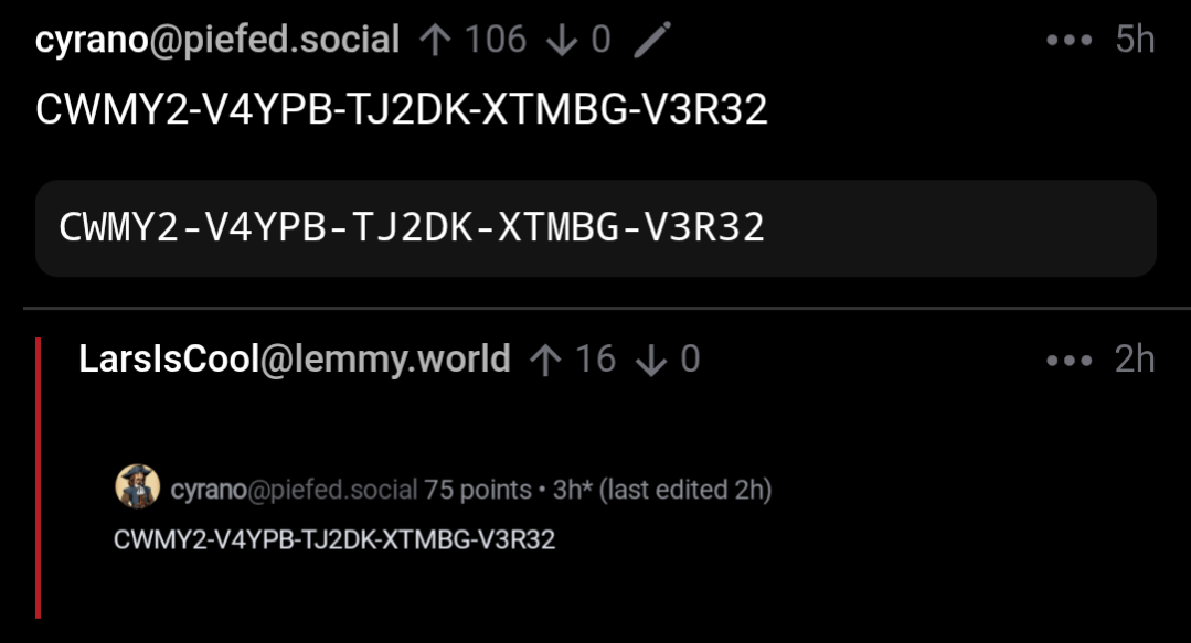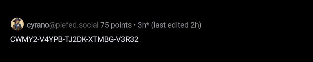 CWMY2-V4YPB-TJ2DK-XTMBG-V3R32you can activate any windows or office by using vlmcsd (https://github.com/Wind4/vlmcsd). you can selfhost it, choose any windows version like 11 pro or enterprise or office product like office 24 enterprise. activate it using your kms server and you can enter the matching licence key every so often to activate it. doesn’t cost a cent except hosting on 512mb/1cpu. i think there are public kms servers with vlmcsd too. obviously JUST FOR TESTING PURPOSES ;)