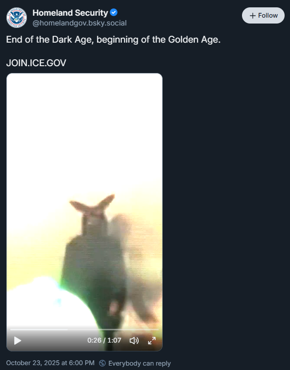 My partner was fake edited in one of the DHS videos in Portland! He was wearing a moth man costume and dancing to EDM at the ICE center and they put fake smoke and filters over it to make him look scary lol… Absolutely ridiculous.