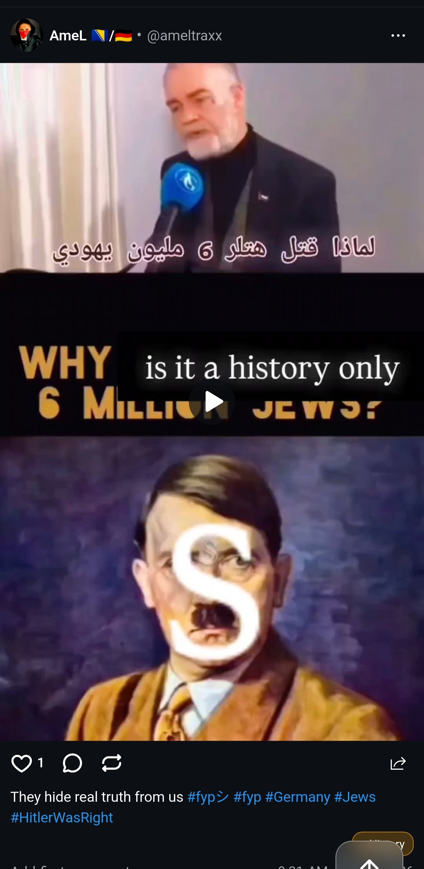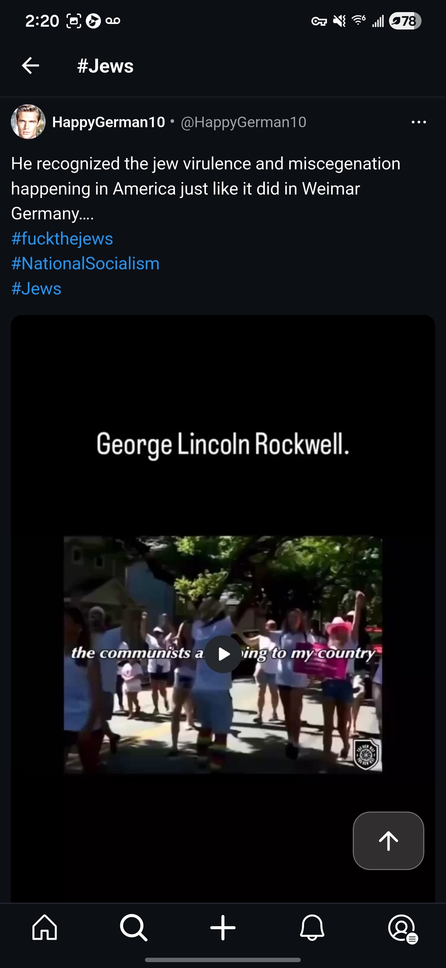Yeah, I gave it a shot. I opened the app, and immediately scrolled past a “Jews are secretly ruling the world” conspiracy theory post from a user named something like @ItsAlwaysTheJews… Okay, maybe a fluke. Not a great first impression, but let’s see what else the app has to offer. Then a few posts later there was a “Hitler was right about the Jews” post.