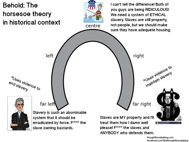 And your picture is kind of a strawman in this context, because I wasn’t using “horseshoe politics” to describe phenomena of the abolition era. I was using it to describe phenomena of the current era where the contexts are different. But since tankies are allergic to nuance, I don’t suppose you’ll be comprehend that and you’ll probably just resort to ad hominems.