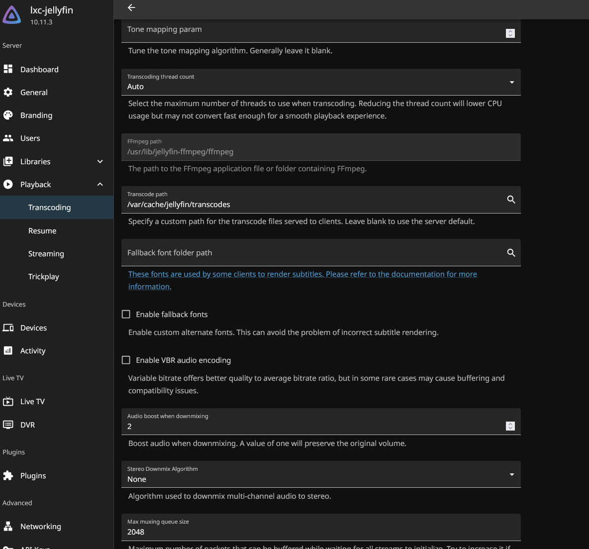 I also battled some problems with the Jellyfin temp/transcode folder ballooning in size, causing the whole server to crash as I hadn’t dedicated enough space to the container. Considered making a script to clear the folder at even intervals, but it would cock up streaming if the missus was watching while the purge happened.