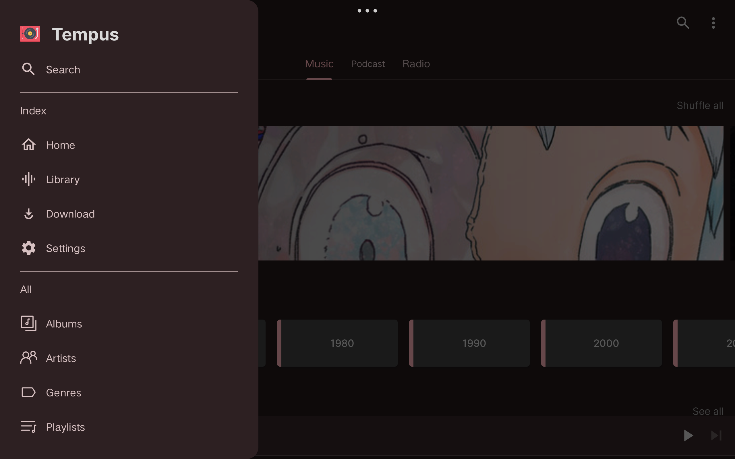 Tempus is an open-source and lightweight music client for Subsonic, designed and built natively for Android.