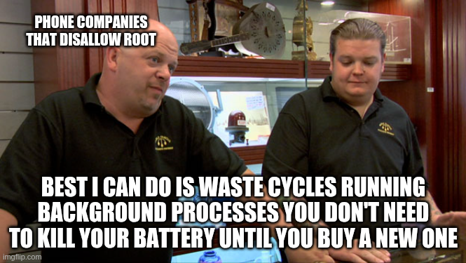 Now the noose is closing and all it’s going to take is the combined forces of the richest companies in the world to crush what little competition remains. Undercut or sue Fairphone into oblivion, for example. The lawsuits don’t even have to have merit - they can eat the costs for a few quarters to ensure no viable alternative to the walled garden ever gets a foothold.